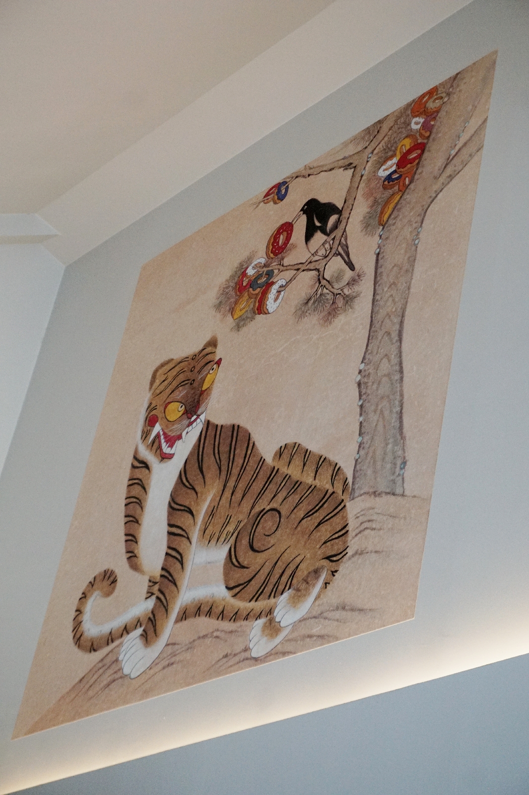 La décoration / L'ambiance : Nous avons trouvé qu'il n'y avait pas beaucoup de décoration. A part 2-3 peintures, il n'y a rien. Le concept des peintures étaient sympa par contre, mélanger le thème des donuts avec le thème vintage/traditionnel, c'est vraiment bien trouvé. Ils auraient du placer les peintures un peu plus bas sur le mur, pour que l'on puisse mieux les observer, elles en valent la peine.